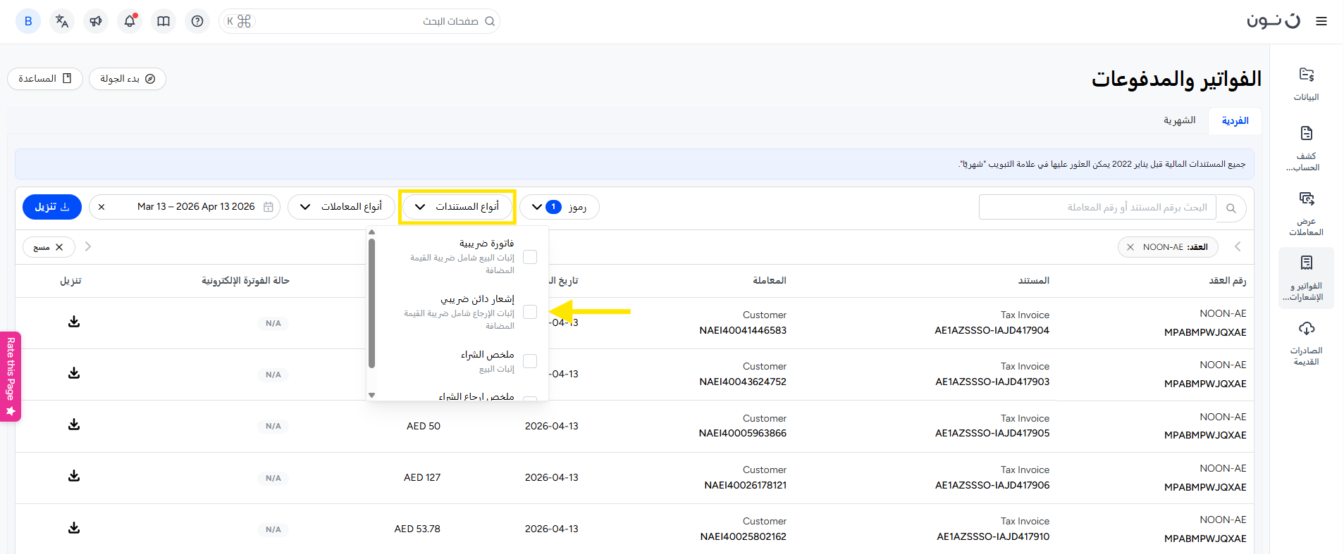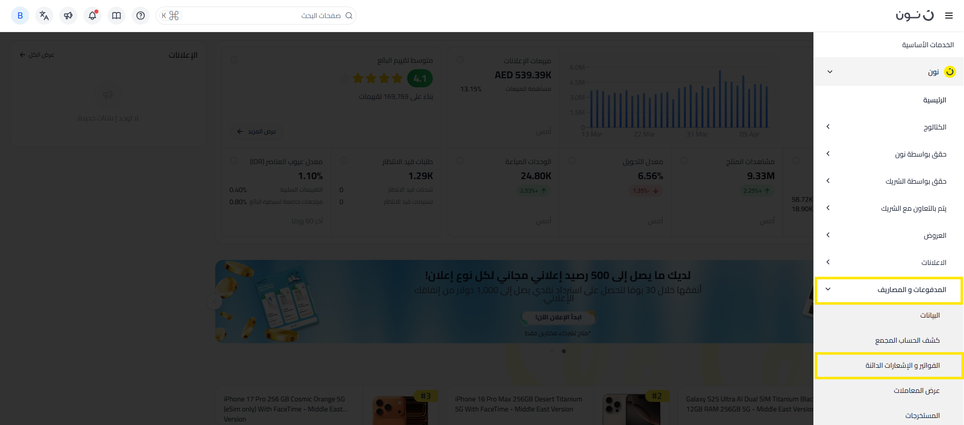 عند إرجاع المنتجات بعد الشحن ، ستبلغك نون عبر تقرير المدفوعات . يمكنك الوصول إليه من قسم المدفوعات والمصاريف في موقع البائع عن طريق إدخال نطاق زمني محدد.