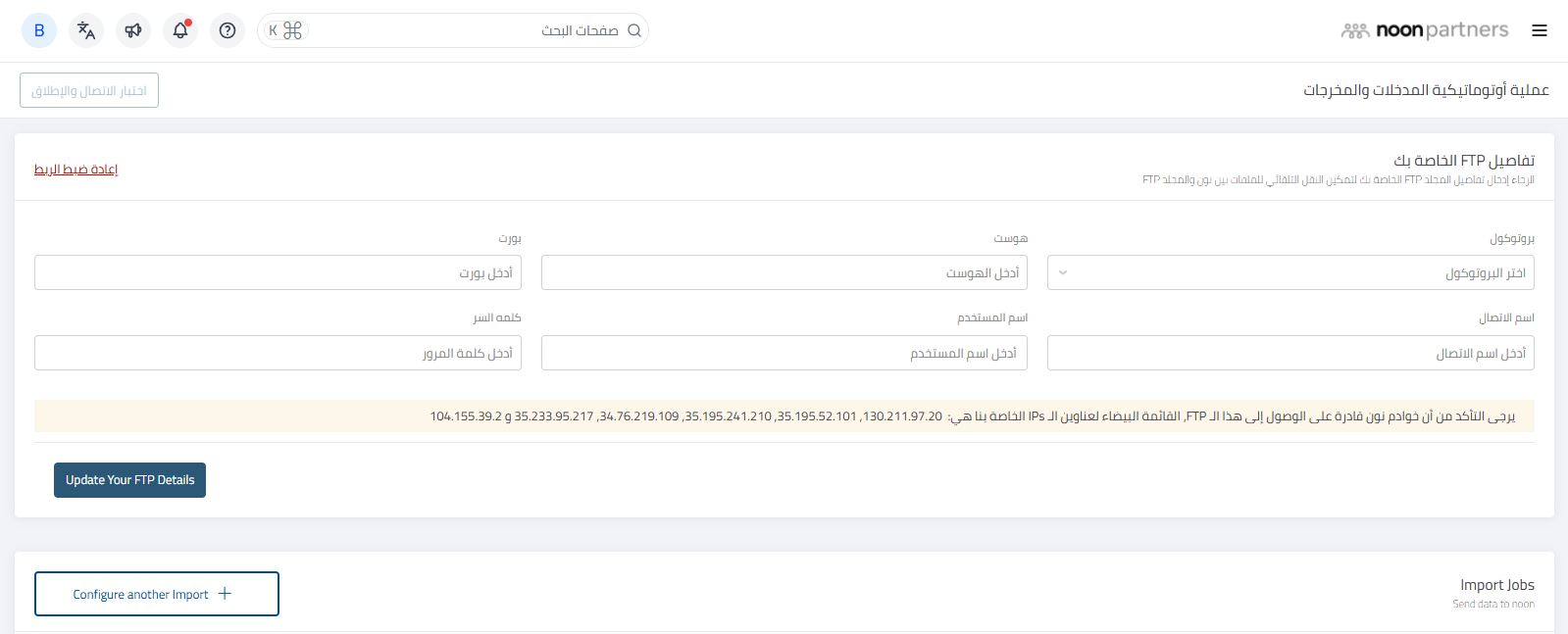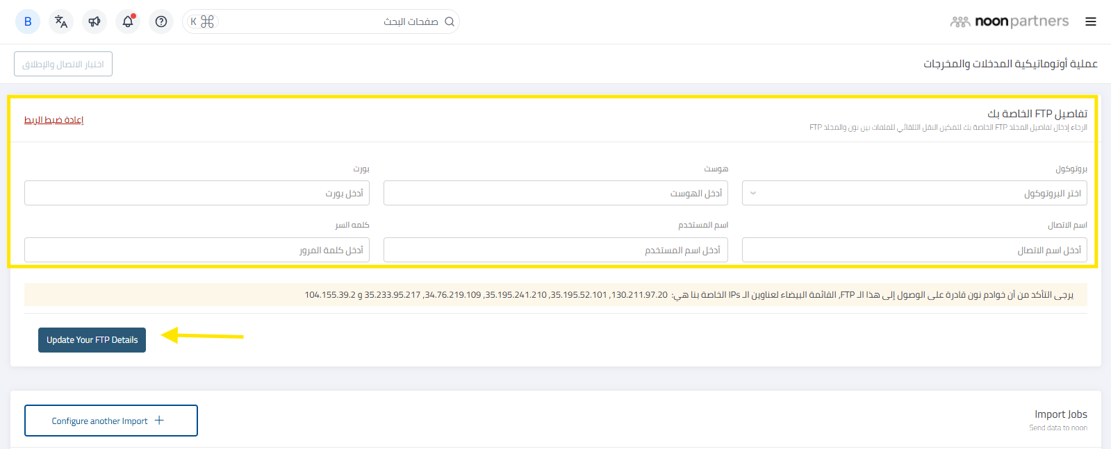 الخطوة 1: استخدم رابط بروتوكول نقل الملفات الآمن لعرض الصفحة في منصة شركاء نون