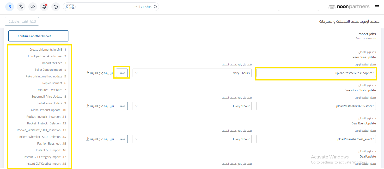 2-أضف مسار الملف - مثل “/Imports/stockfile”