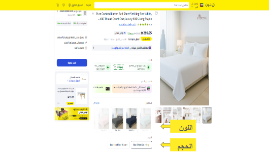 أثناء إدراج منتج ما ، يمكنك إضافة جميع أشكاله المتاحة بحيث يمكن عرضها في صفحة المنتج نفسها على منصة نون. سيسمح ذلك للعملاء برؤية جميع الخيارات المتاحة بشكل مميز في مكان واحد ، واختيار الحجم أو اللون أو المادة أو النكهة التي يفضلونها دون الحاجة إلى البحث عن كل إصدار على حدة. لذلك، فهو يزيد من وضوح مخزونك بطريقة فعالة كما ترى في الصورة أدناه: