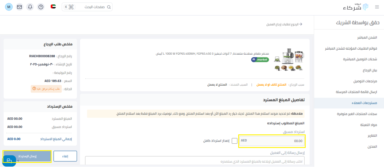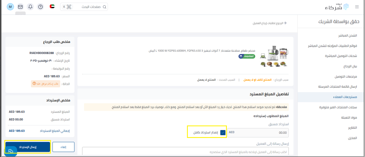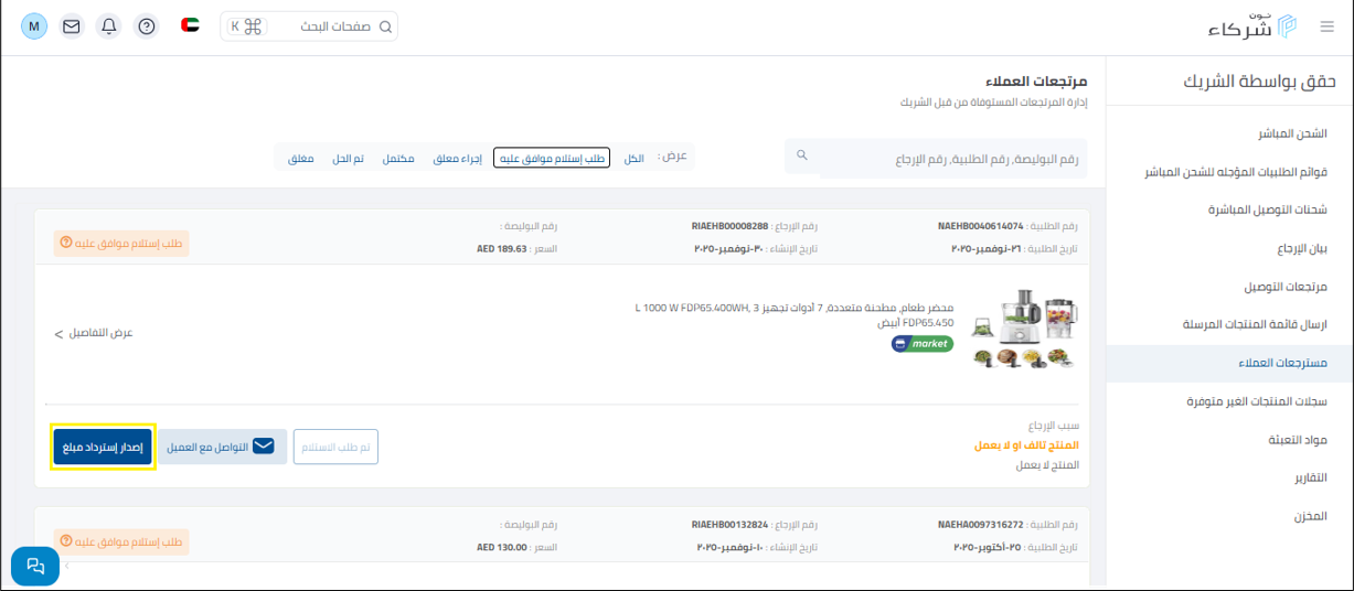 عملية إرجاع العملاء على نموذج الشحن المباشر