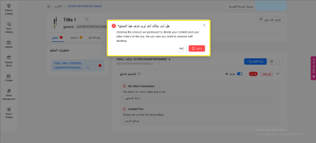 كن حذرًا ، بمجرد حذف partner_sku ، لا يمكن استعادته وسيتعين تحميل جديد.
