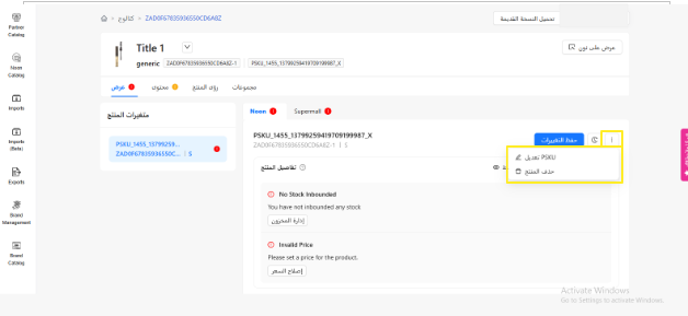 ملاحظة : يُرجى عدم استخدام partner_sku عند حذف المنتج. يمكنك تصدير الكتالوج ومن ثم الحصول على رمز PSKU_code.
