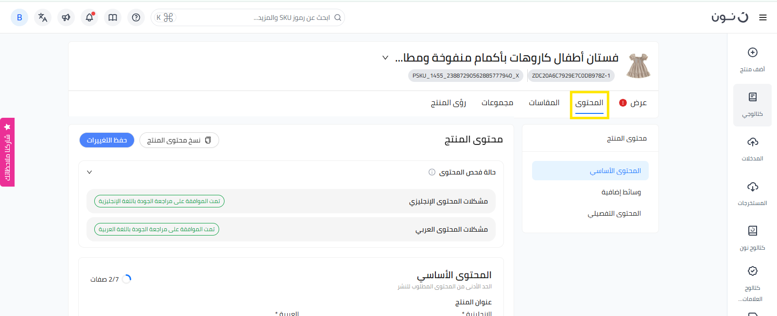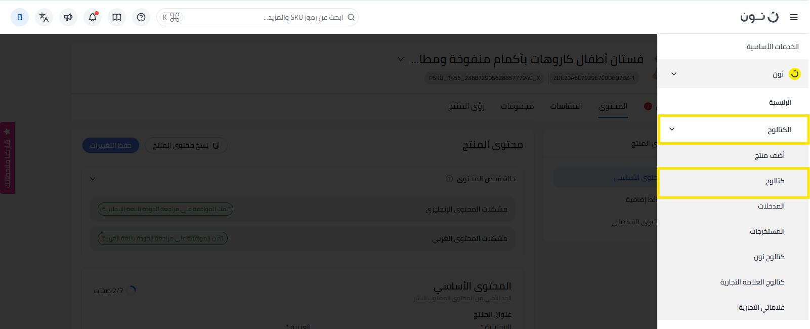 تتيح نون الآن للبائعين في المملكة العربية السعودية الاشتراك في الفواتير الإلكترونية لهيئة الزكاة والضرائب والجمارك (ZATCA). وهذا يعني أن نون ستقدم الفواتير إلى ZATCA نيابة عن البائعين بدءًا من 27 ديسمبر 2023. إذا لم يشترك البائعون، فسيكونون مسؤولين عن تقديم فواتيرهم إلى ZATCA بأنفسهم. يتضمن هذا المستند دليلاً خطوة بخطوة للاشتراك في الفواتير الإلكترونية لـ ZATCA. وهذا يعني أيضًا أنه يجب على البائعين تحديد معدل ضريبة القيمة المضافة المفروضة على المنتجات التي يدرجونها في حالة إعفاءها من ضريبة القيمة المضافة. افتراضيًا، سيتم إدراج جميع المنتجات بمعدل ضريبة القيمة المضافة القياسي. من أجل تغيير معدل ضريبة القيمة المضافة لمنتجك، يرجى الانتقال إلى قسم كتالوج منصة البائعين ضمن علامة التبويب العرض والمحتوى.