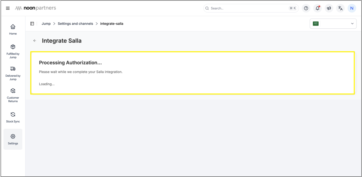 - سيتم معالجة طلبك، وسيتم توجيهك إلى حساب JUMP على موقع البائعين، حيث ستظهر رسالة نجاح تؤكد أنه تم ربط حساب سلة. وبهذا تكتمل عملية التكامل.