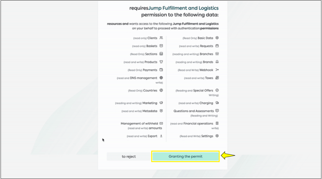 في الخطوة التالية، سيُطلب منك تفويض JUMP على حسابك في سلة. سيكون لديك خياران