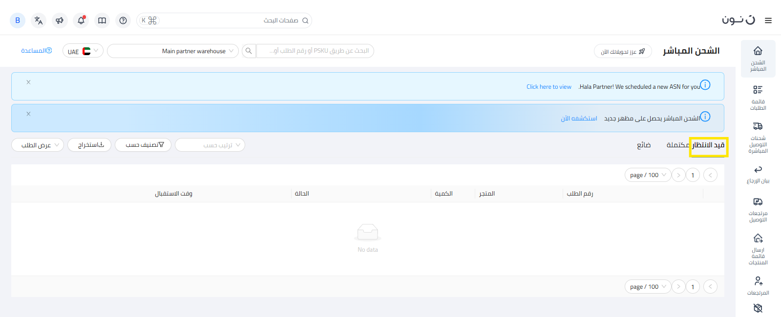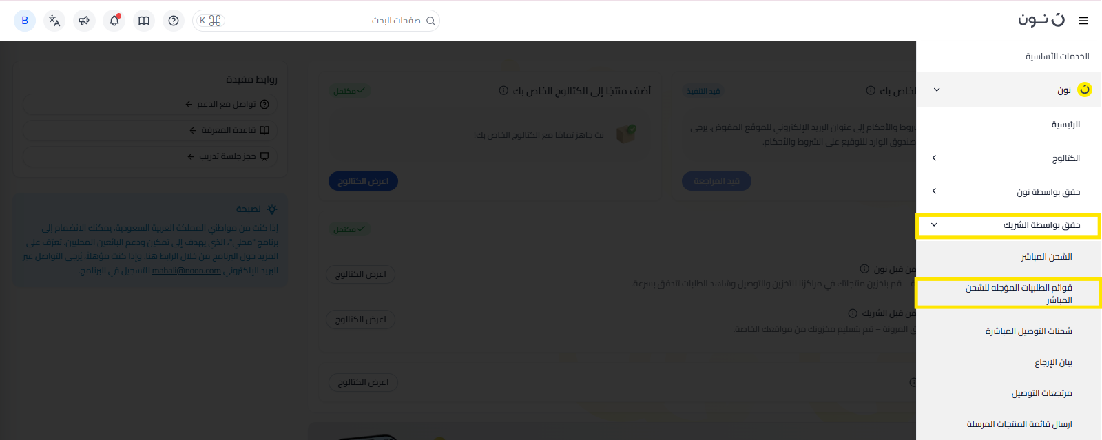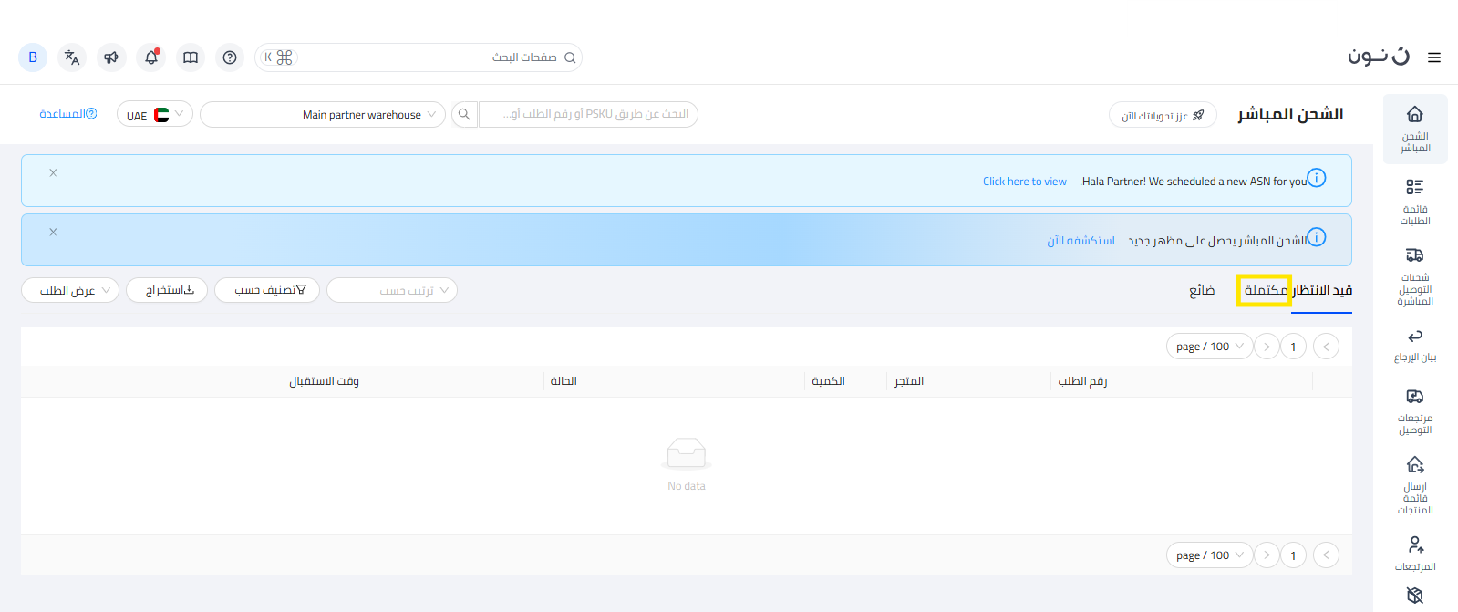 انتقل إلى: حقق بواسطة الشريك > الشحن المباشر > مكتملة