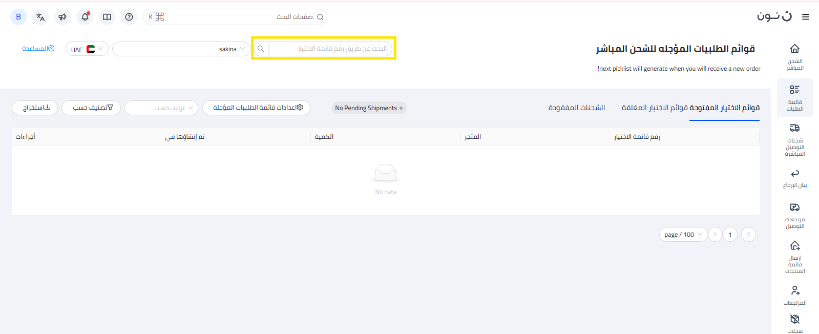 استخدم وظيفة البحث في منصة البائع حسب رقم الطلب أو رقم الصنف أو PSKU.