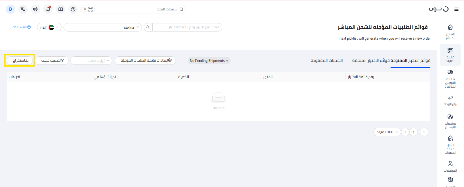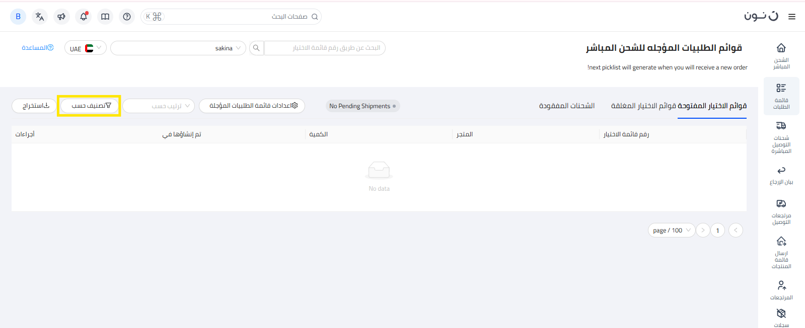 اذهب إلى: حقق بواسطة الشريك > منقولات > الشحنات المرتجعة