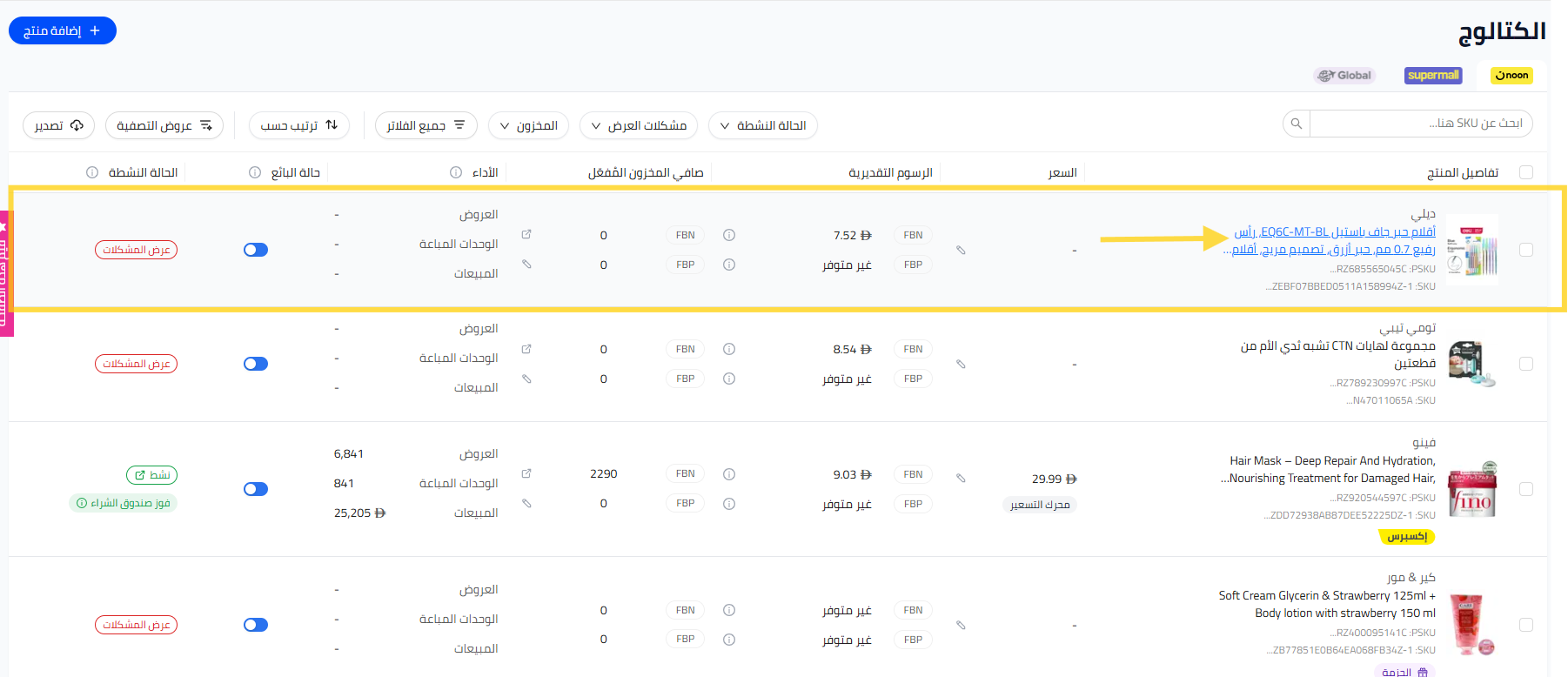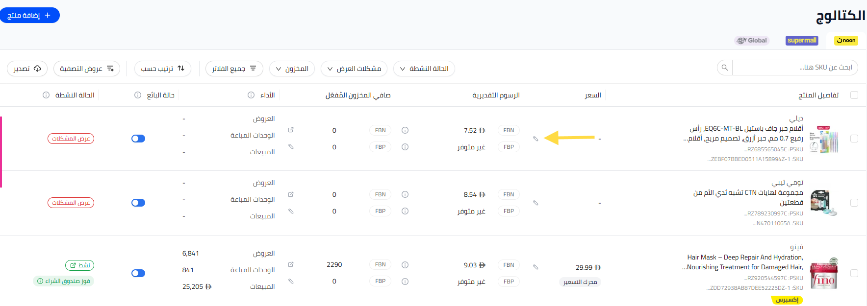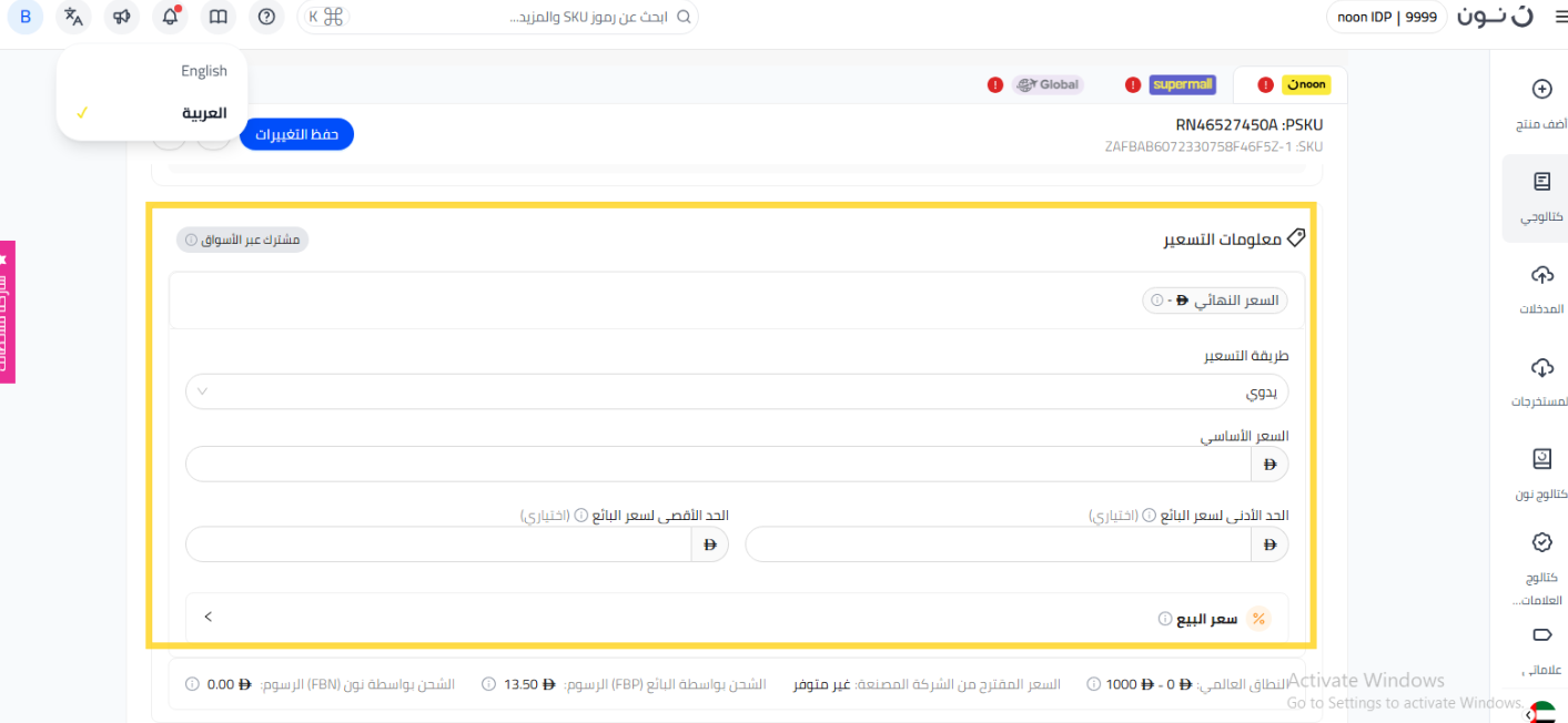 - يمكنك أيضًا النقر على الـ SKU من هنا وتحديث السعر في قسم العرض.