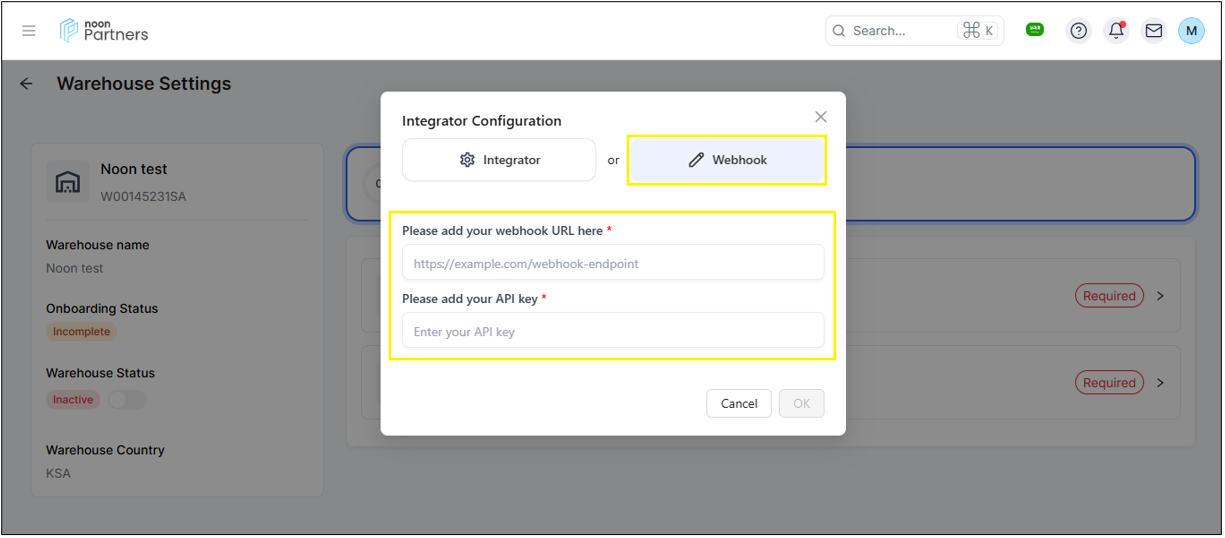 -إذا كان لديك فريق تقني قوي ويمكنك دمج العملية بنفسك، يمكنك استخدام خيار الويب هوك. لمزيد من التفاصيل حول كيفية عمله، يمكنك التواصل مع مدير حسابك في نون.