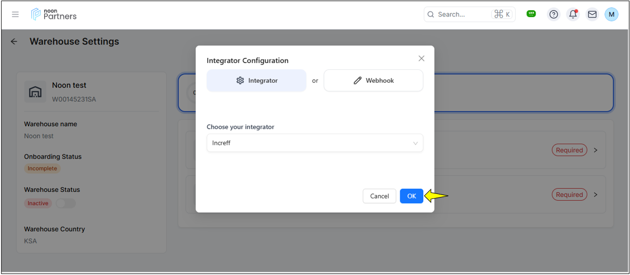 - بمجرد تحديد الشريك المتكامل مع نون، انقر فوق موافق لتأكيد العملية.