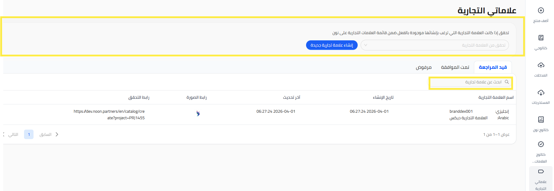 بإمكانك البدء في إنشاء منتجات جديدة (رموز التخزين التعريفية للبائع) فورًا بعد طلب علامة تجارية جديدة، ولكن هذه المنتجات لن تظهر إلا بعد موافقة نون على طلب العلامة التجارية.
