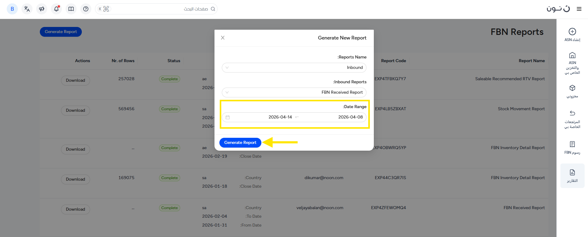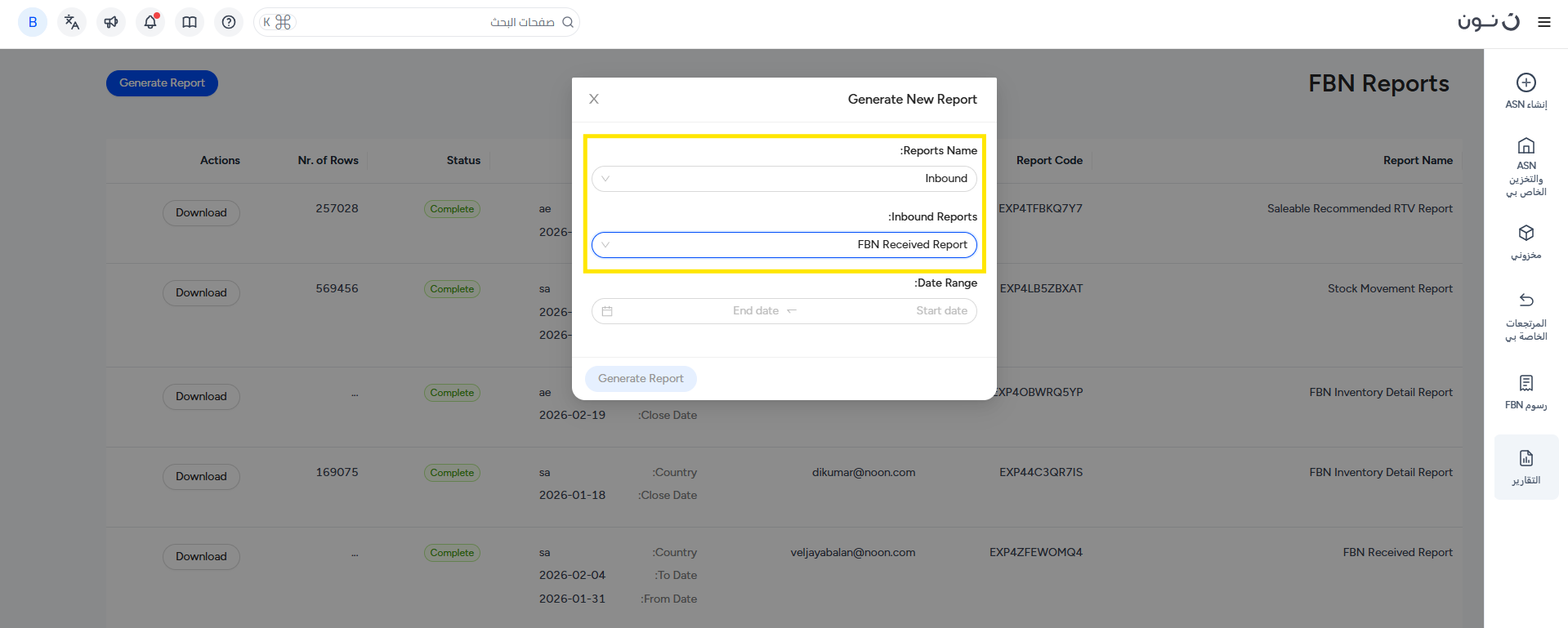 اتبع هذه الخطوات البسيطة للوصول إلى تقرير FBN Received Report في موقع البائع: