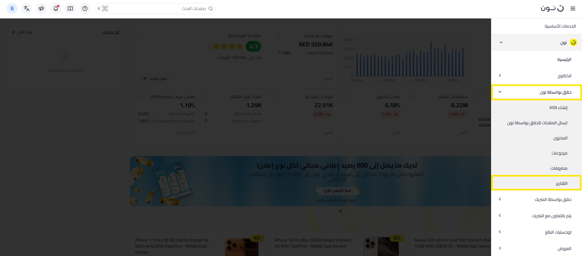 - انتقل إلى قسم حقق بواسطة نون، ثم اختر التقارير.