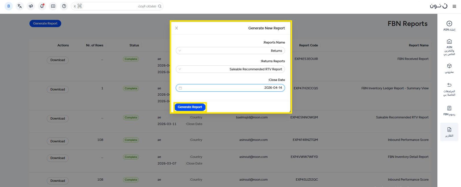 ولتجنّب هذه الرسوم، من الضروري استرجاع المخزون القديم قبل انتهاء الفترة المحددة.يساعدك تقرير المرتجعات الموصى بها للمنتجات القابلة للبيع في تحديد هذا المخزون، مما يُسهّل عليك عملية الاسترجاع ويمنع فرض رسوم التخزين.فيما يلي دليل حول كيفية الوصول إلى هذا التقرير، بالإضافة إلى شرح للبيانات المضمنة فيه.
