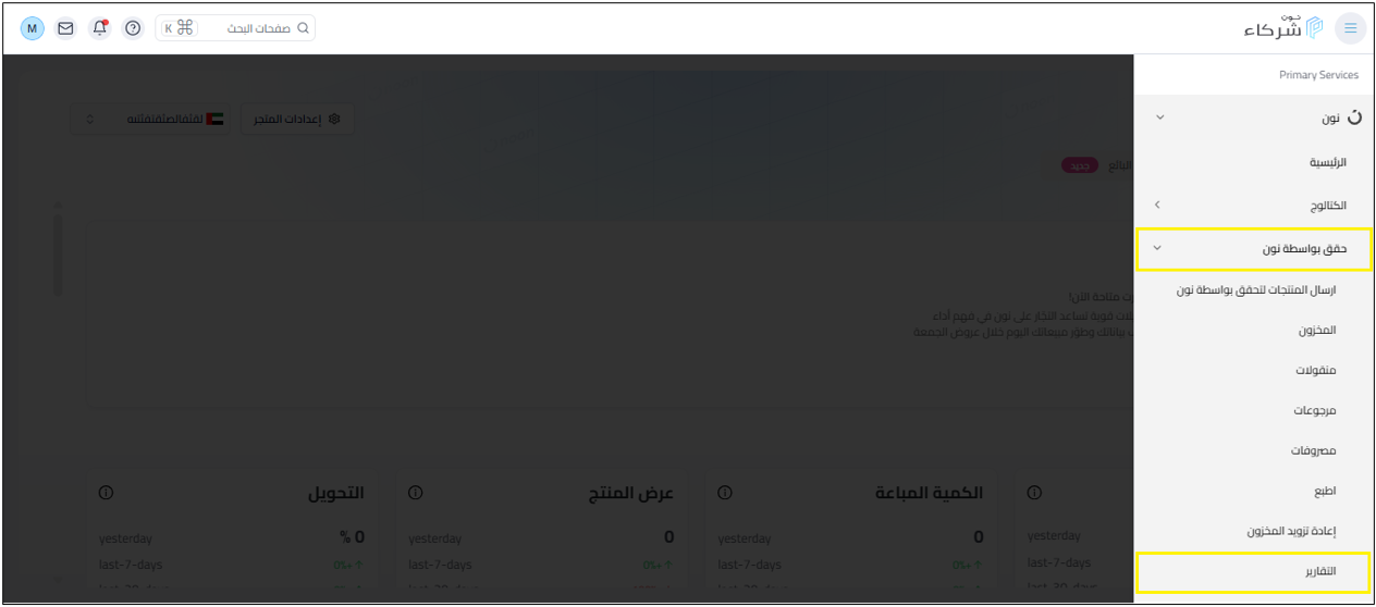 1- اضغط على قائمة التنقل، ثم اختر(حقق بواسطة نون) FBN ثم تقارير.