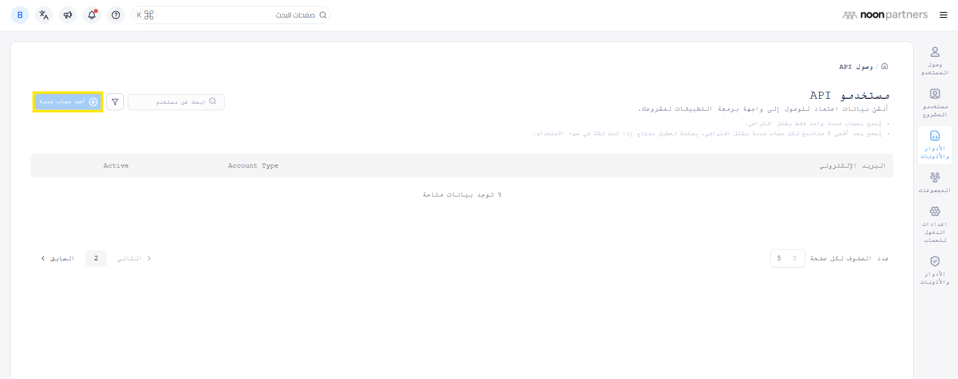 - انقر على زر أضف حساب خدمة الموجود على الشاشة.