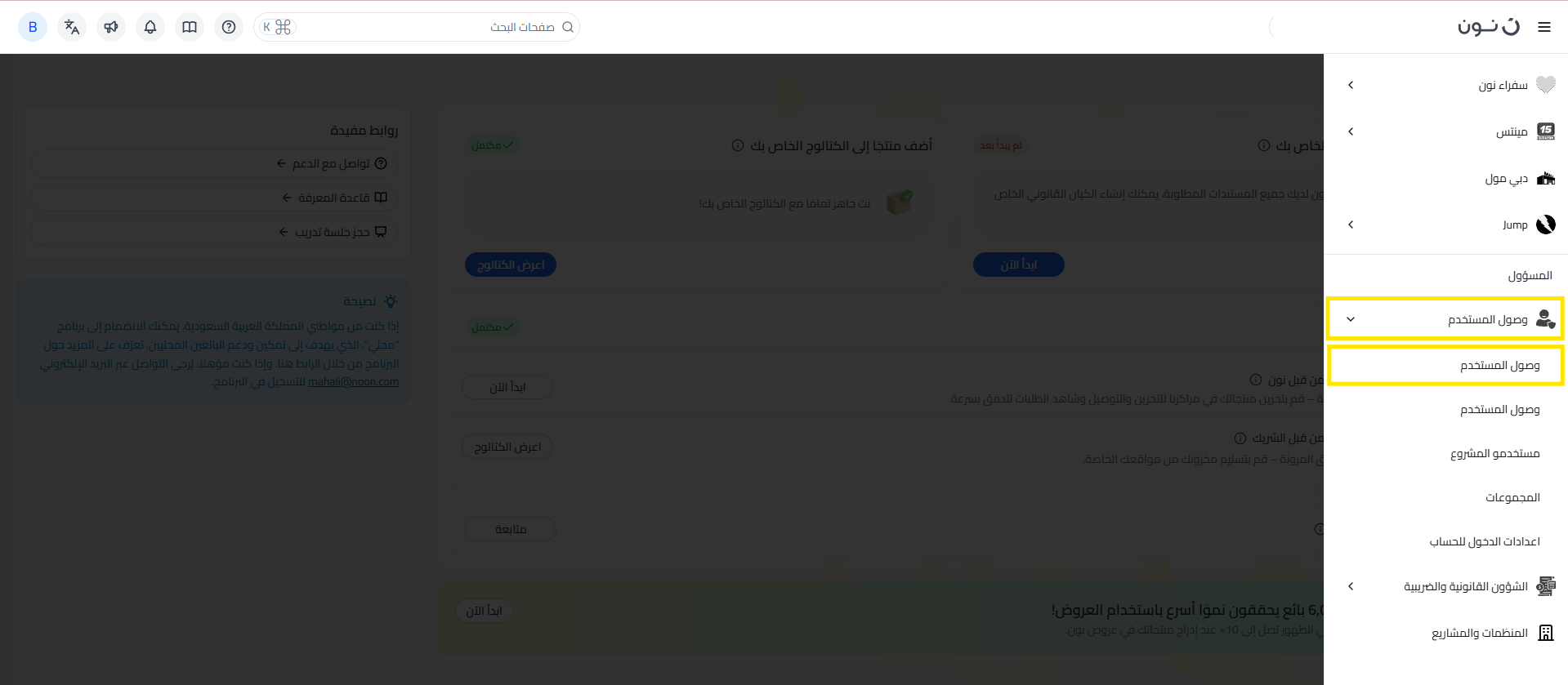 - قم بتسجيل الدخول إلى موقع البائعين، ثم انقر على وصول المستخدم، ثم انتقل إلى صفحة وصول المستخدم.