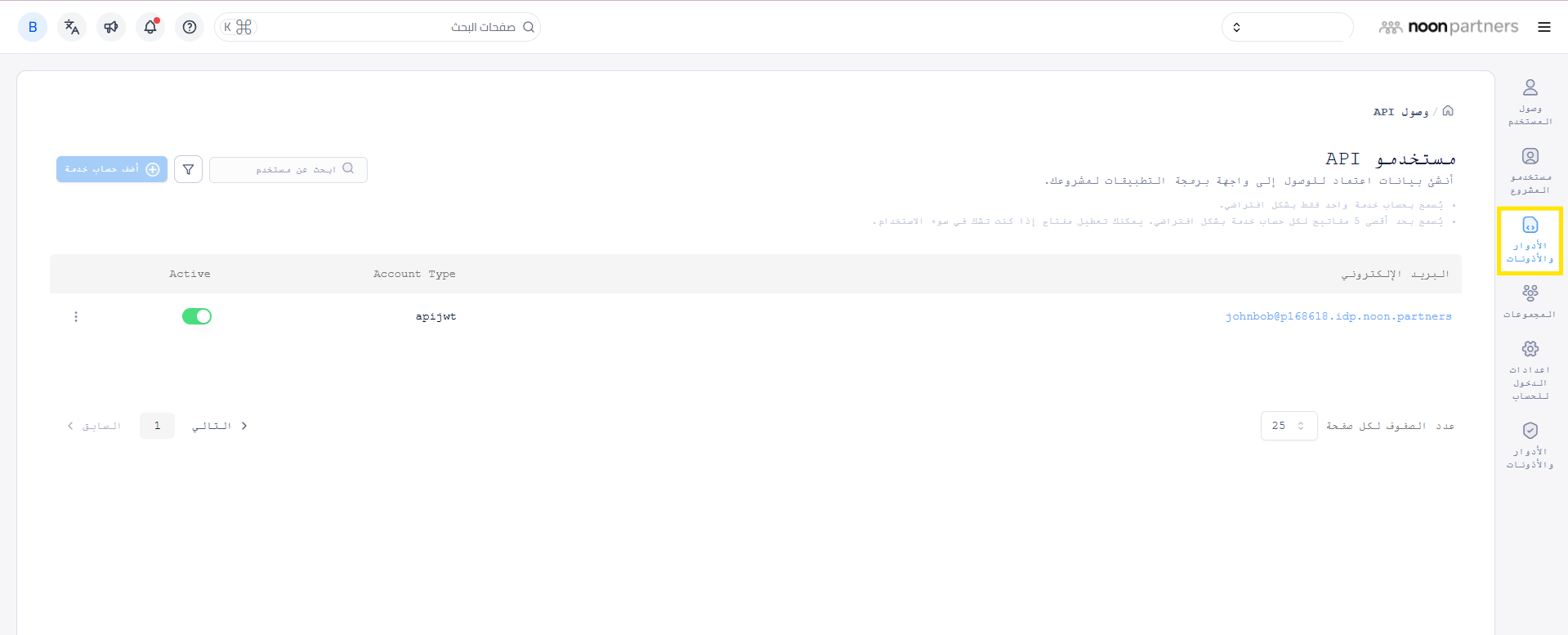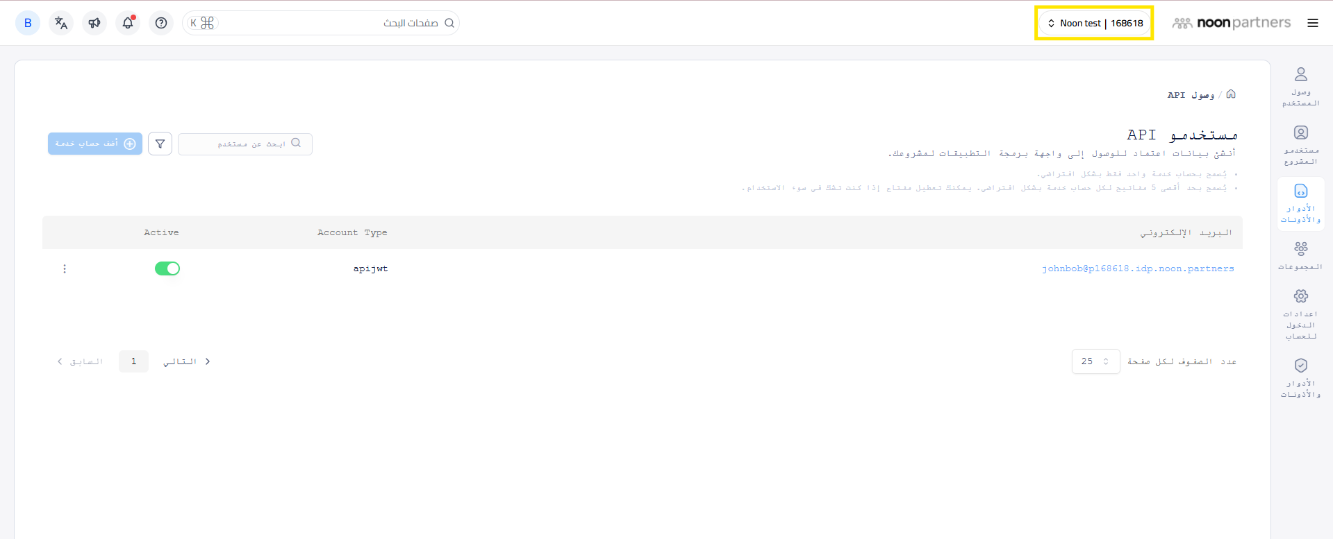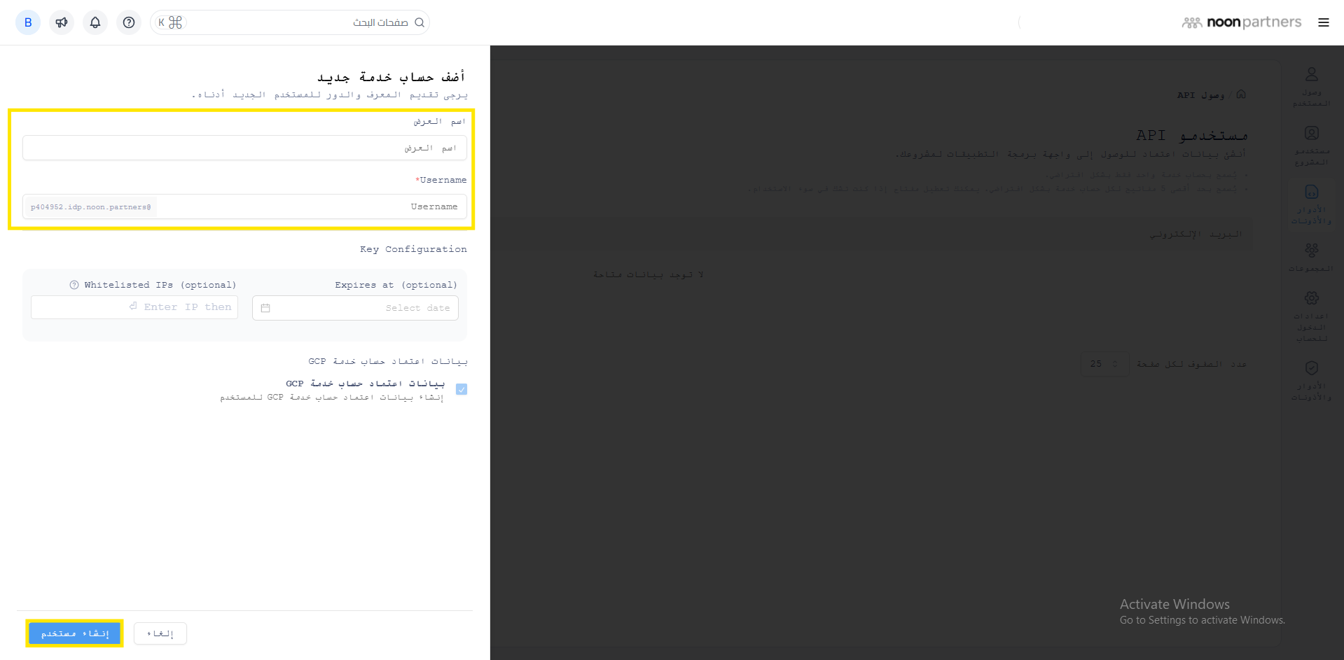 2. سيكون اسم المستخدم بالصيغة التالية username + @p1455.idp.noon.partners