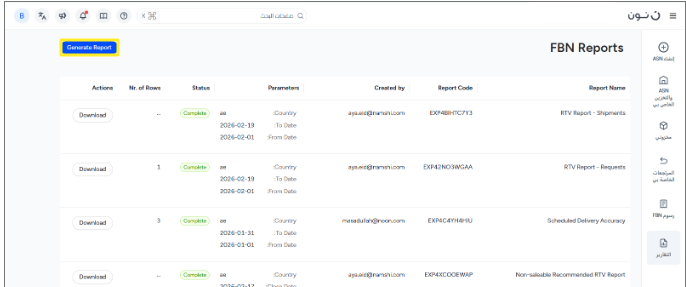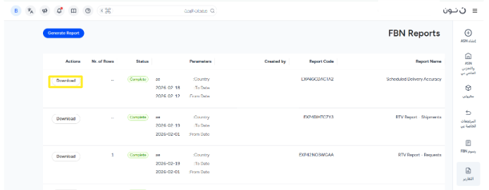 الوصول إلى تقارير الاستيفاء بواسطة نون على موقع البائعين