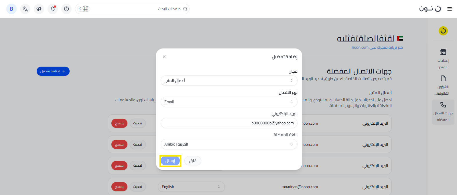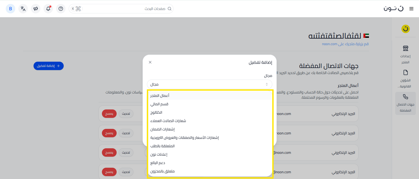 4. تفضيلات الاتصال مخصصة فقط لتلقي رسائل البريد الإلكتروني الخاصة بالمجال ولا يتم منحها الوصول إلى موقع البائعين.