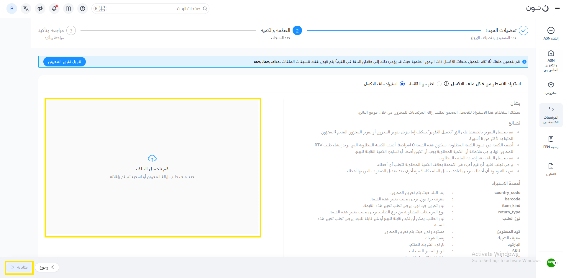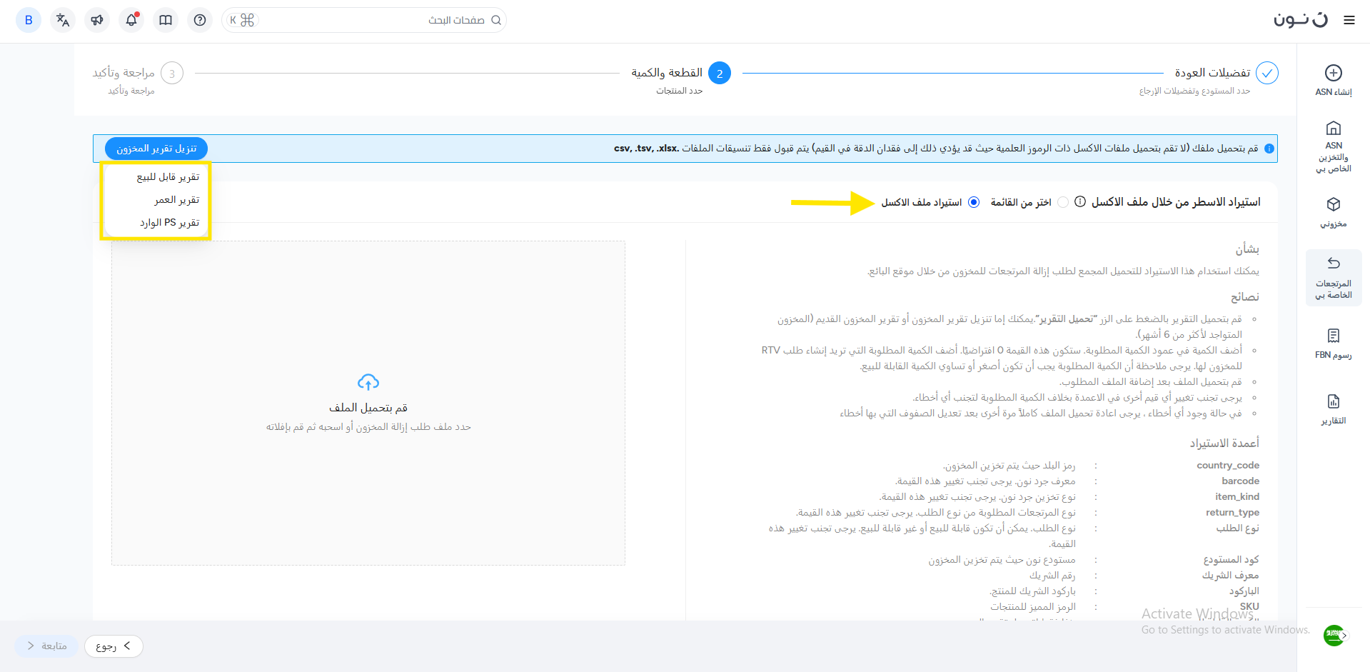 هام: يجب أن يكون عنوان موقع الإرجاع مرتبطًا بتفاصيل الاتصال الخاصة بمستلم شحنات مرتجعات (RTV).اتبع الخطوات التالية لتقديم طلب إزالة المخزون: