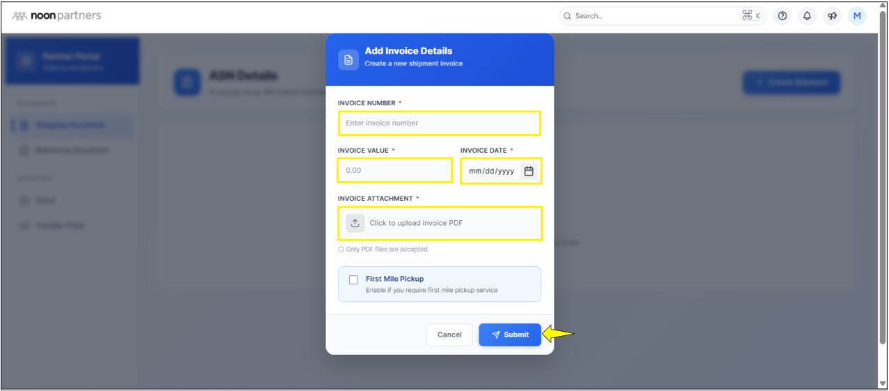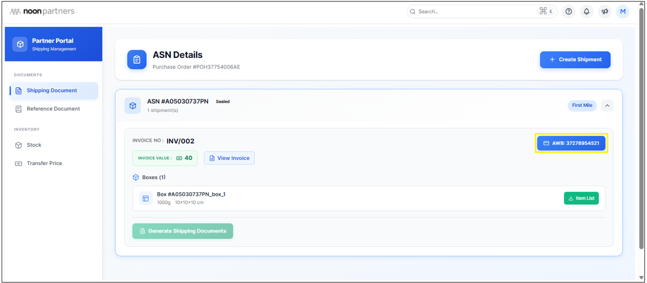 - التنزيل من البوابة: يمكنك أيضًا الوصول إلى هذه المستندات عبر قسم مستندات الشحن (Shipping Document) في بوابة الشركاء.