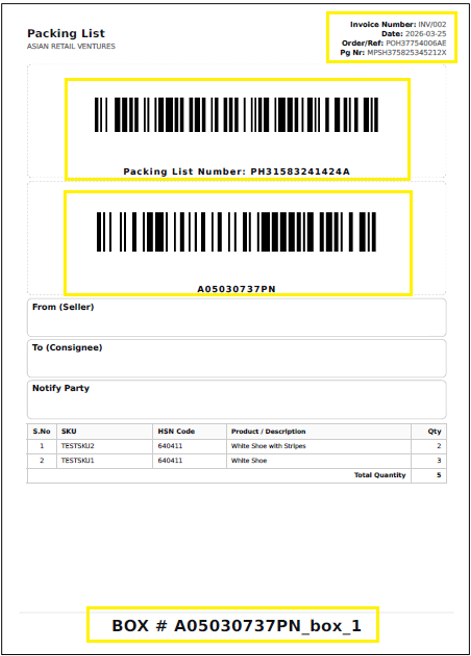 -سيؤدي هذا إلى تنزيل ملف PDF الخاص بـ قائمة التعبئة (Packing List) التي تحتوي على جميع تفاصيل الصندوق. يُرجى أخذ نسختين على الأقل من هذه الوثيقة. سيتم الاحتفاظ بنسخة منها في المستودع لأغراض الاستلام(Inbound)، وسيتم إرجاع النسخة الأخرى إليك كإثبات تسليم (POD).