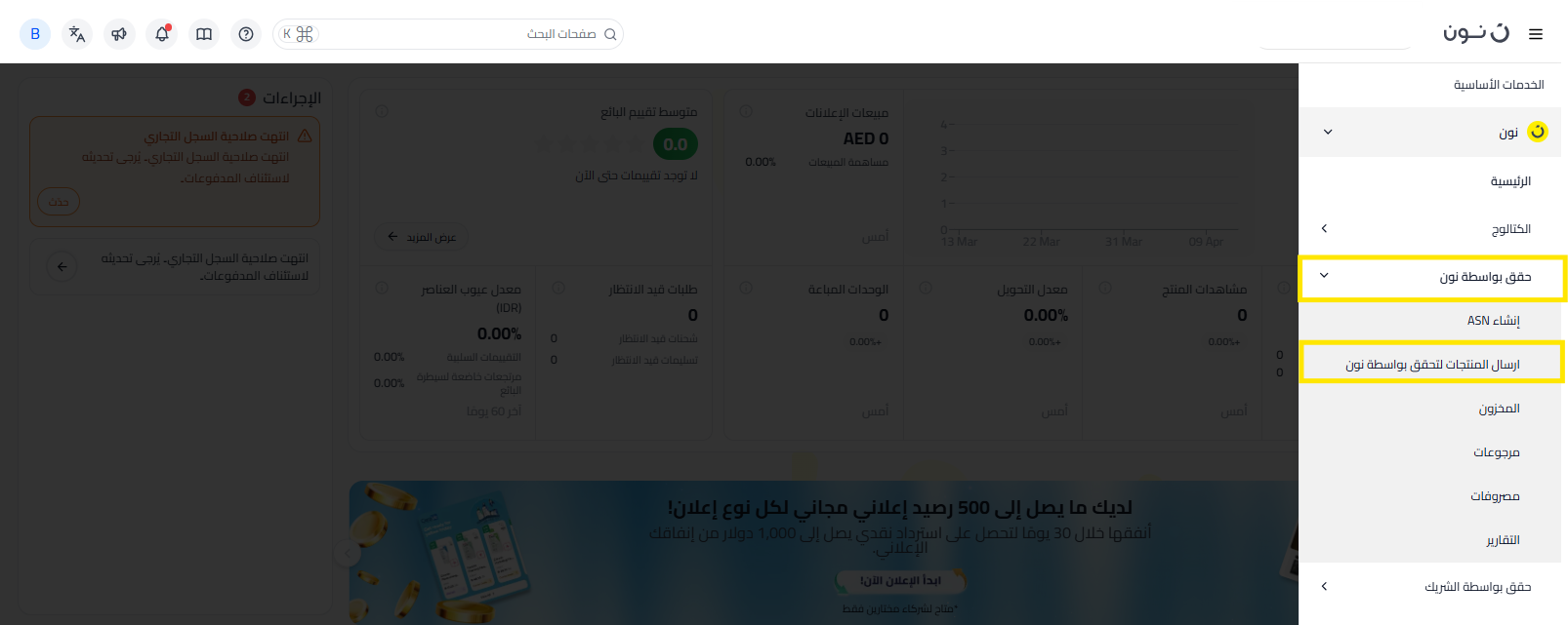 - انقر على حقق بواسطة نون، ثم انقر على إرسال المنتجات لتحقق بواسطة نون.