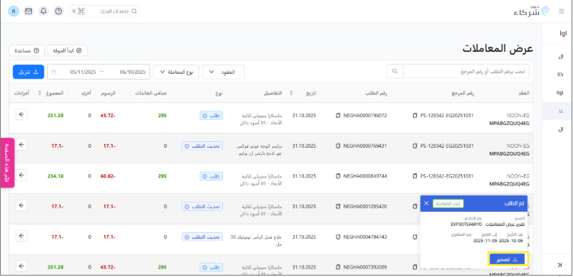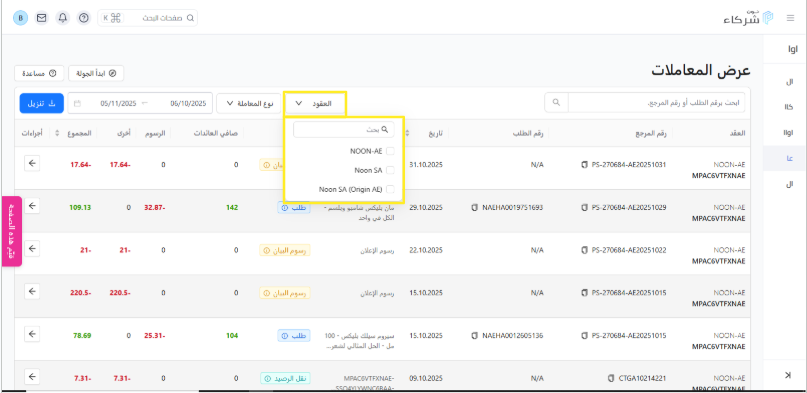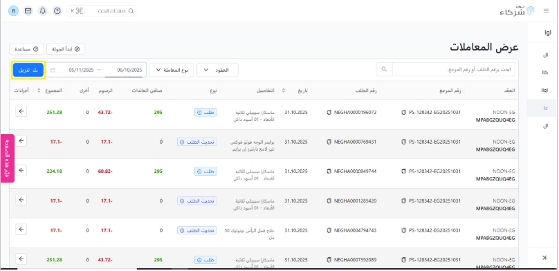 ستجد أيضًا خيارًا لتنزيل تفاصيل عرض المعاملات كملف اكسل. لتنزيل هذا التقرير، اتبع هذه الخطوات البسيطة: