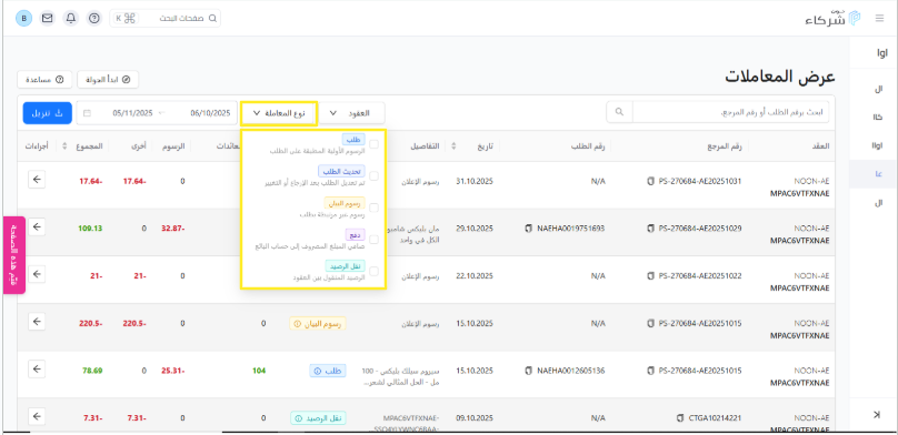 - يتوفر في هذه الصفحة فلتر آخر هو "نوع المعاملة". راجع هذا الجدول لفهم كل نوع معاملة.