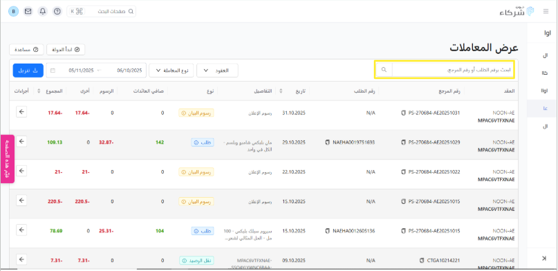 في صفحة عرض المعاملات، ستلاحظ بعض خيارات التصفية والبحث لتحسين نتائج البحث الخاصة بك.