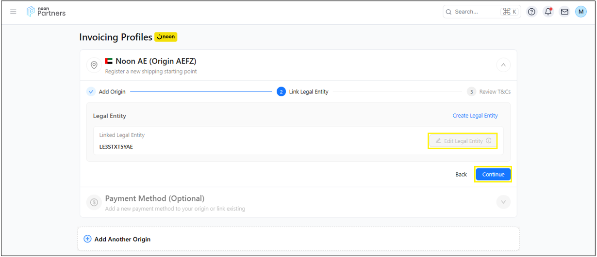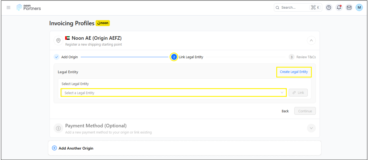 -بمجرد النقر على "حفظ"، ستنتقل إلى الخطوة التالية لربط كيانك القانوني. لديك خياران هنا: