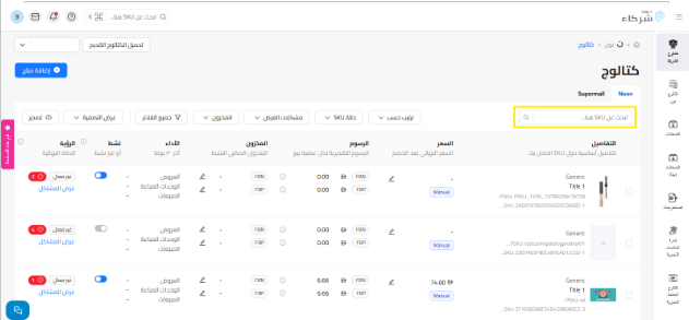 يساعدك شريط البحث الموجود أعلى يسار كتالوج الشركاء في العثور على المنتجات بسرعة. يمكنك البحث باستخدام: