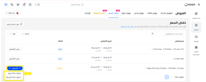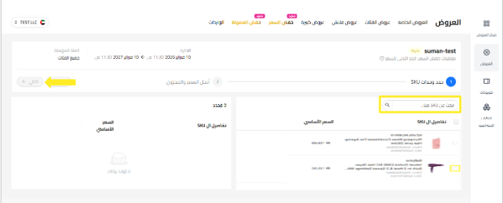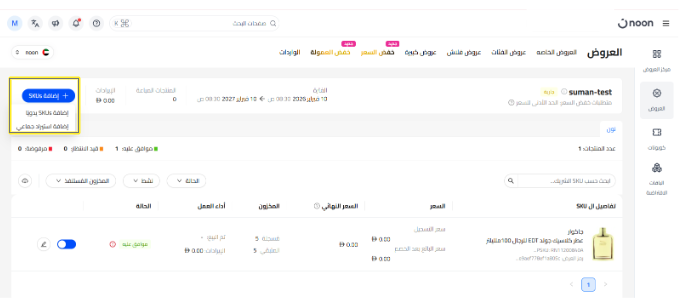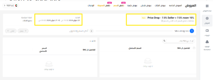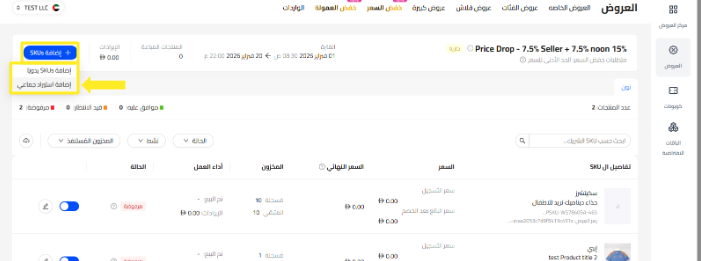 يمكنك استخدام خيار "إضافة SKU" لإضافة منتجات جديدة إلى العرض حتى بعد انطلاقه، مما يتيح لك تقديم المزيد من الخصومات المميزة.