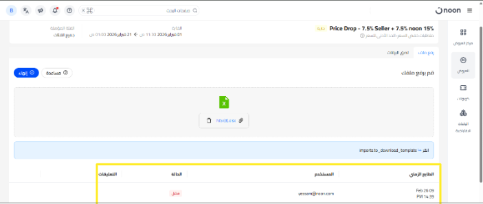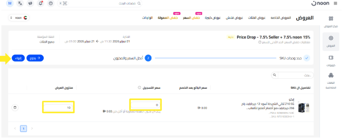 | اسم العرض | 15% خفض السعر - 7.5% البائع +7.5% نون |