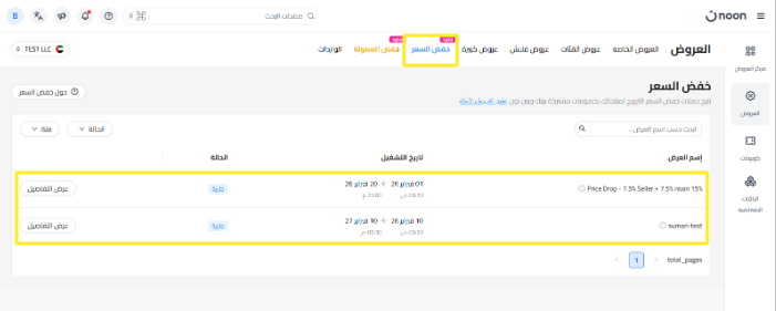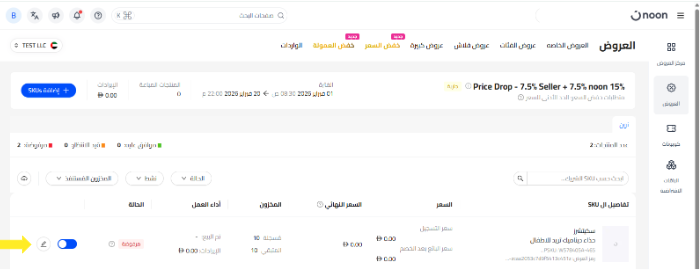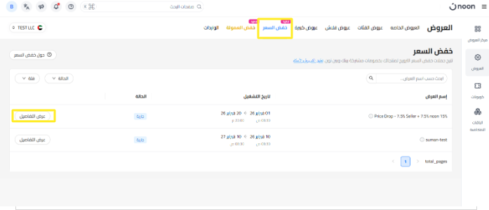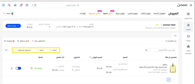 - في الصفحة التالية، ستجد خيارًا يسمي خفض السعر. اضغط عليه لعرض جميع عروض خفض السعر النشطةعلى منصة شركاء نون.