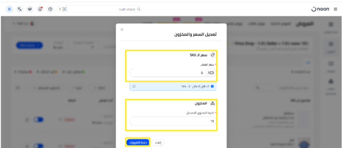 بمجرد تسجيل وحدات التخزين في العرض، لا يزال بإمكانك تعديل سعر التسجيل ومخزون العرض باتباع هذه الخطوات البسيطة: