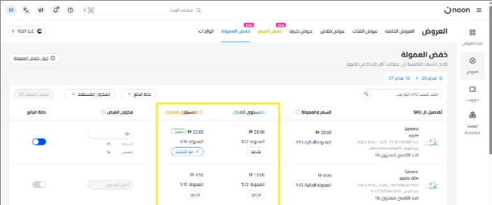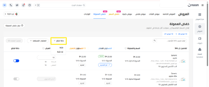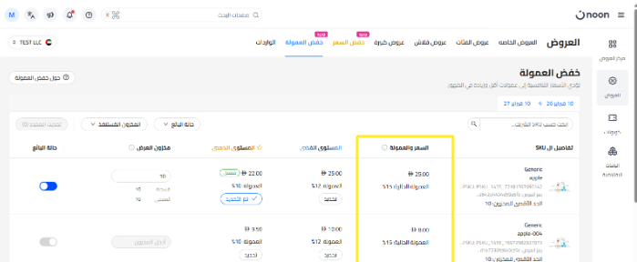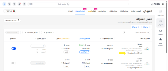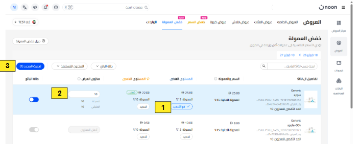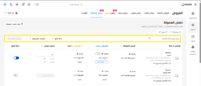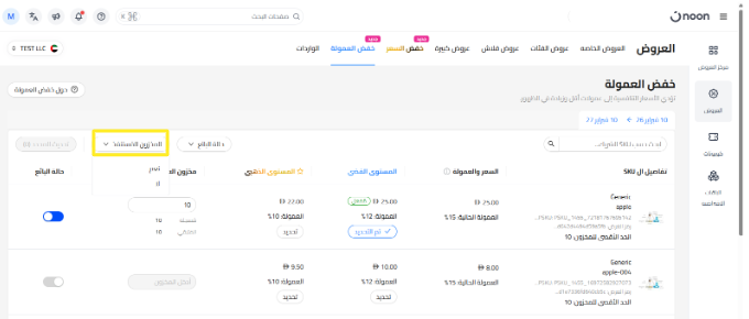 ضمن قسم خفض العمولة ، ستظهر لك جميع وحدات SKU المؤهلة للمشاركة في عروض تخفيض العمولة.