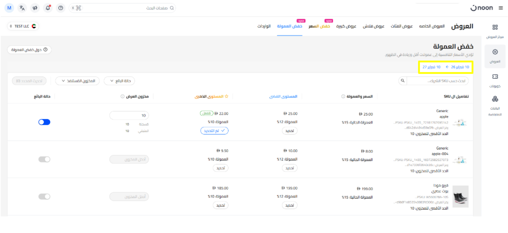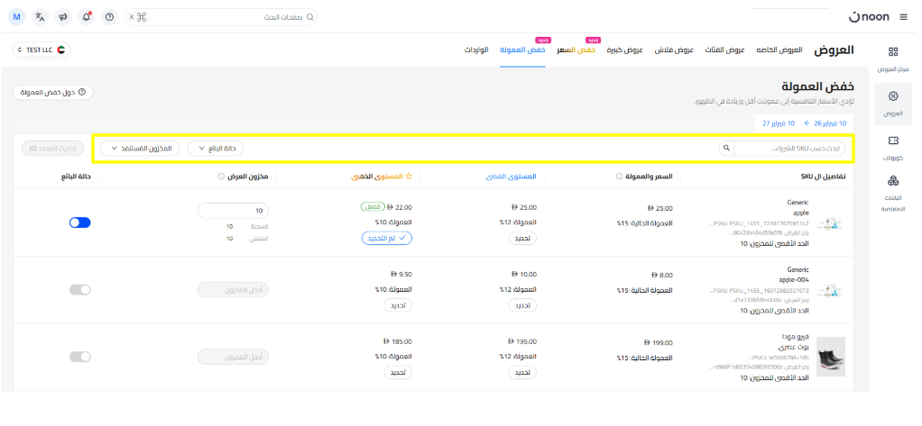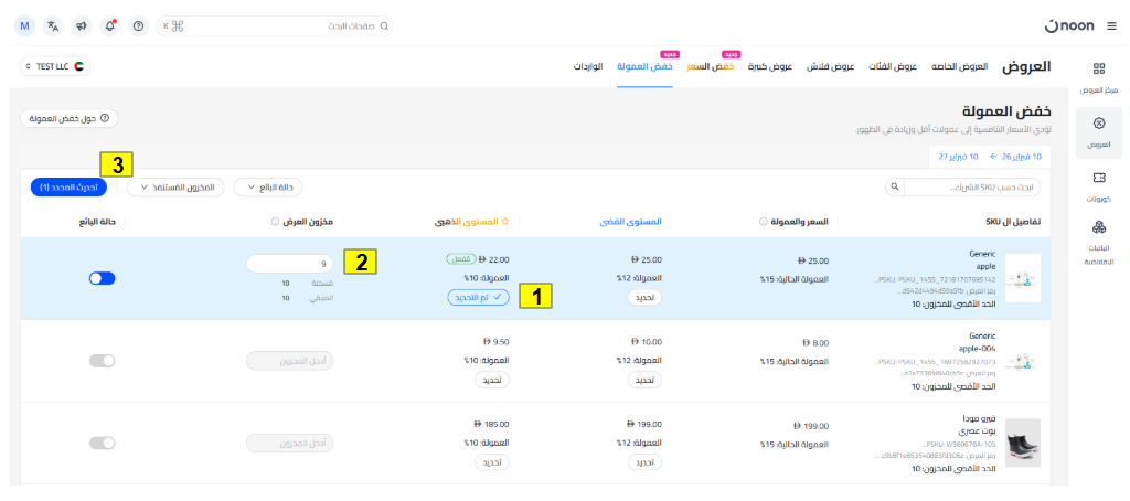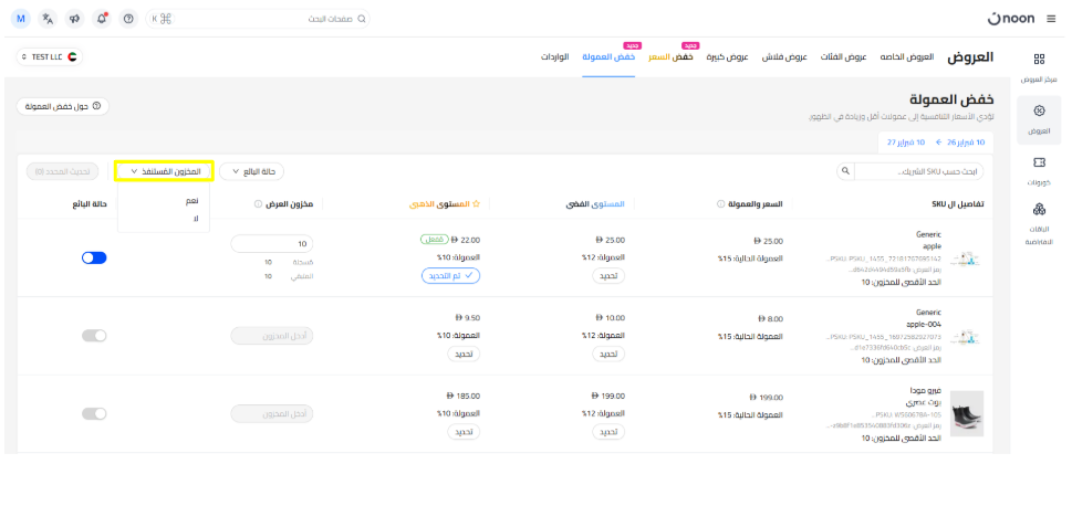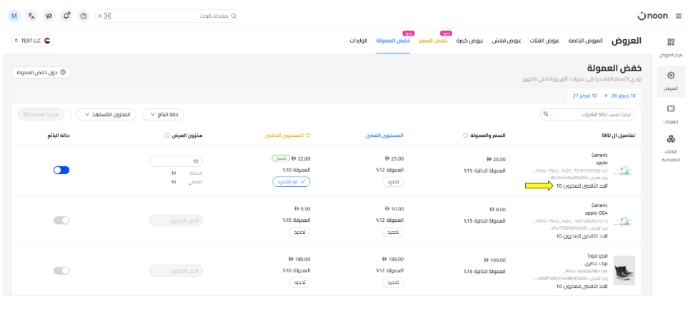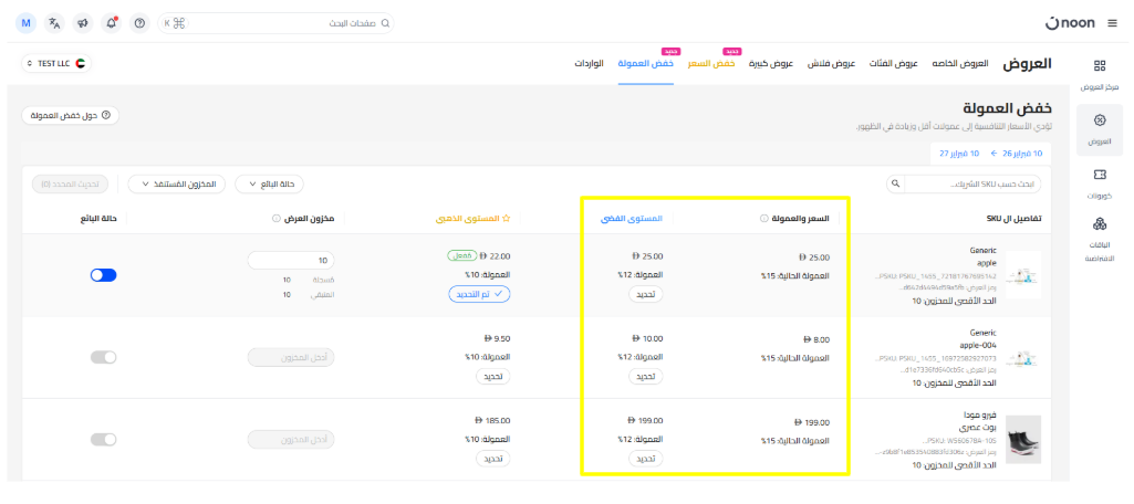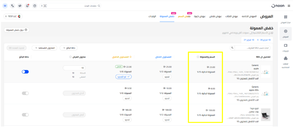 - ستتمكّن من رؤية السعر الحالي والعمولة الخاصة بذلك المنتج (SKU).