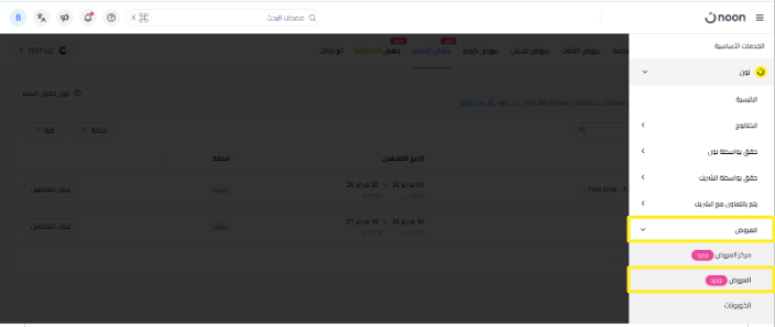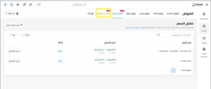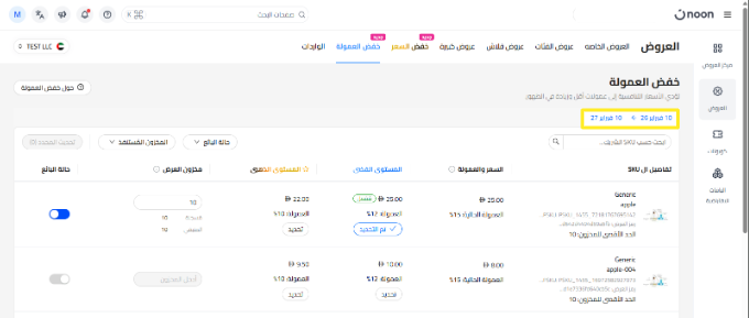 يتم عرض جدول العروض في أعلى الصفحة، حيث يمكنك الاطلاع على جميع وحدات SKU المؤهلة لكل فترة زمنية.