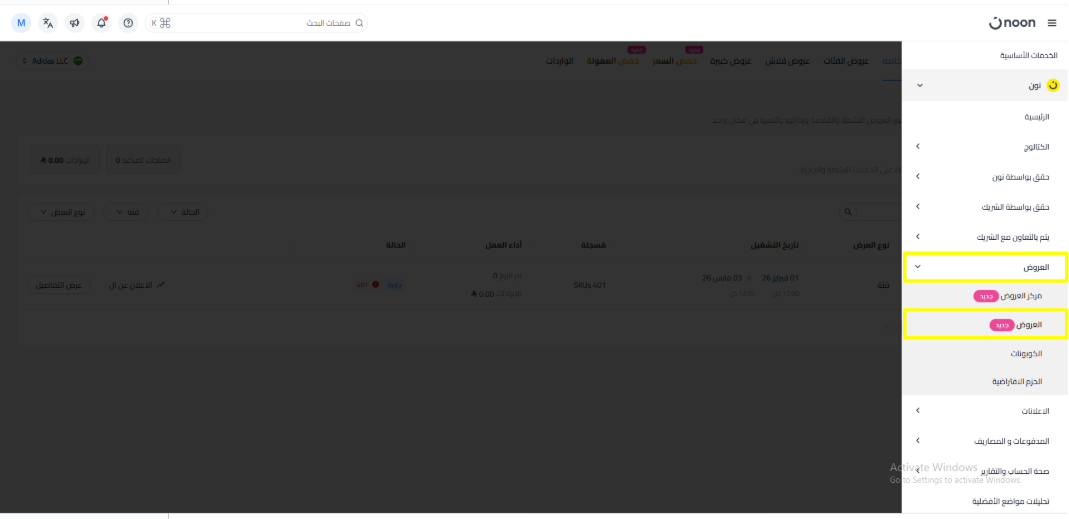 قم بتسجيل الدخول إلى منصة البائعين (Seller Lab)، ثم انقر على العروض، وبعد ذلك اختر العروض.