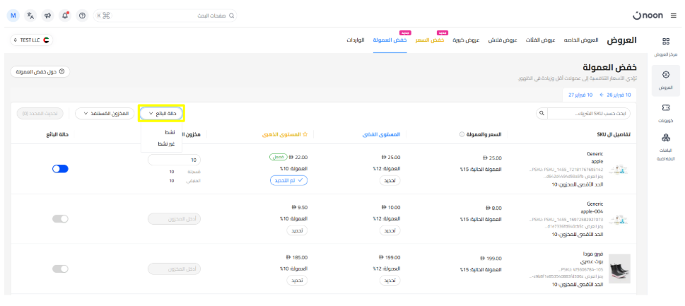 - سيظهر على المنتج تصنيف انه مفعل، وسيتم تعديل السعر والعمولة وفقًا لذلك.