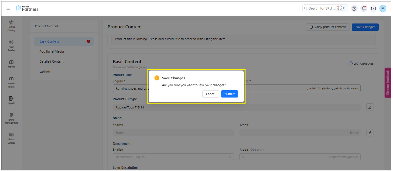 -ستظهر نافذة منبثقة لتأكيد التغييرات. انقر على "إرسال" للمتابعة.