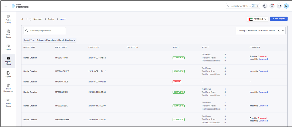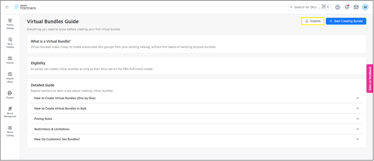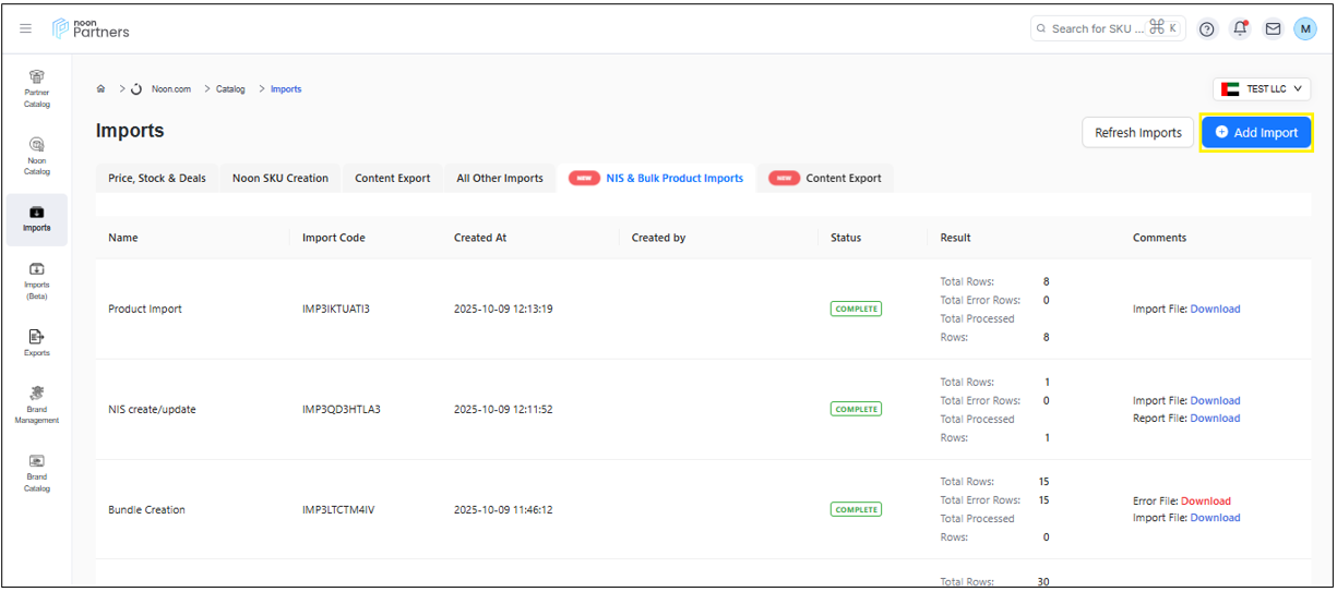 - انقر فوق "استيراد" ضمن "كتالوج الشريك"، ثم انقر فوق "إضافة الواردات".