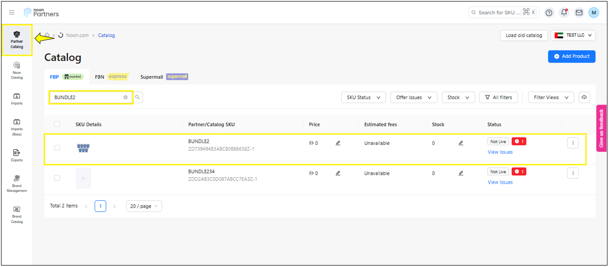 -لمزيد من التفاصيل، يمكنك البحث عن رمز المنتج (SKU) الخاص بالحزمه في كتالوج الشركاء والنقر عليه لإكمال باقي التفاصيل. راجع هذا القسم لمعرفة كيفية إكمال التفاصيل دفعة واحدة.