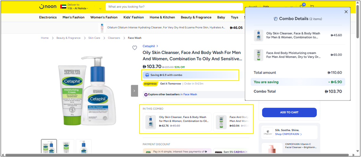 -بمجرد تفعيل الباقة، ستظهر على المنصة كما هو موضح في لقطة الشاشة أدناه. يمكنك النقر على قسم المجموعات لعرض السعر الأصلي لهذه المنتجات. في الأسفل، سترى سعر المنتج بعد الخصم.