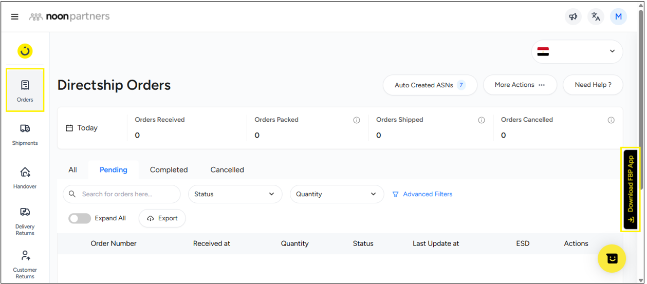 ستجد المستودع مرتبطًا بمتجرك. انقر عليه للمتابعة. في الخطوة التالية، ستظهر لك الصفحة الرئيسية للتطبيق، حيث يمكنك رؤية الطلب المعلق والشحنة المعلقة. بالتمرير للأسفل، سترى عدد الطلبات في كل مرحلة من مراحل معالجة الطلب كما هو موضح أدناه.