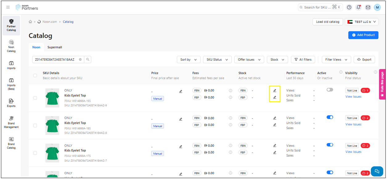 يمكنك بسهولة تحديث السعر والمخزون مباشرةً من صفحة الكتالوج باتباع الخطوات البسيطة التالية: